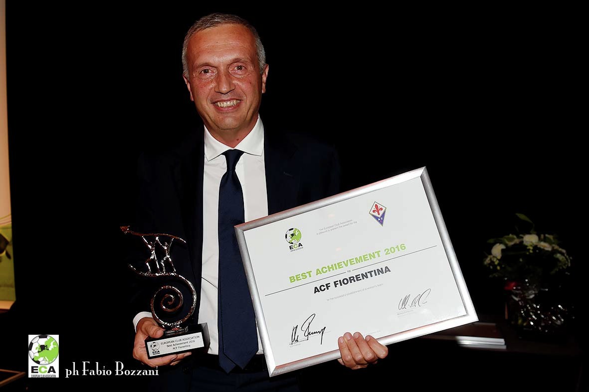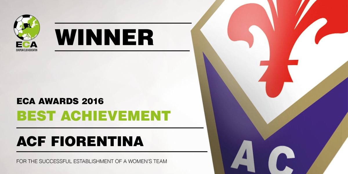 Grazie al progetto di Fiorentina Women’s FC, la Fiorentina è stata premiata per il Best Achievement 2016, ovvero il miglior traguardo, per aver “creato con successo un club di calcio femminile affiliato in maniera professionale”. Nella motivazione del premio si legge: “Nell’estate del 2015, il membro dell’ECA ACF Fiorentina ha deciso di abbattere le barriere e avviare la prima affiliazione professionale di un club femminile in Italia, la Fiorentina Women’s Football Club. Nella prima stagione, il neonato club ha partecipato in Serie A, la prima divisione italiana, e ha raggiunto un ottimo risultato finendo terza, ad un solo punto dalla prima partecipazione alla UEFA Women’s Champions League”.