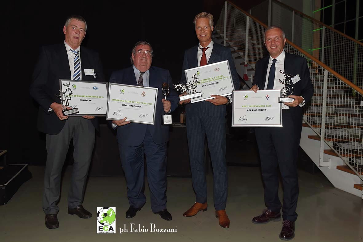 A ricevere questo prestigioso riconoscimento è stato il Presidente di Fiorentina Women’s FC Sandro Mencucci, che ha affiancato gli altri club insigniti sul palco. Nel corso della serata sono stati premiati anche il Real Madrid come European Club of The Year, il Molde FK (Nor) per il miglior avanzamento in una competizione europea nella stagione 2015/16, il PSV Eindhoven per il Best Community & Social Responsibility Programme e Liverpool e Borussia Dortmund, per il Special Moment 2016, ovvero per l’atmosfera di fair play creata dai tifosi in occasione dei Quarti di Finale di UEFA Europa League giocati in Aprile.