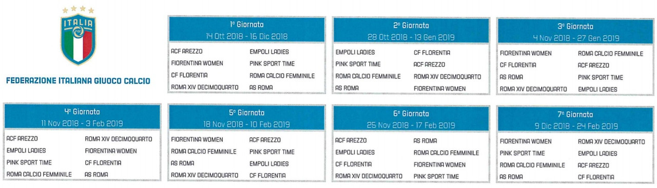 GIRONE 3: Arezzo, Empoli Ladies, Fiorentina Women’s, Florentia, Pink Sport Time, AS Roma, Roma CF, Roma XIV.