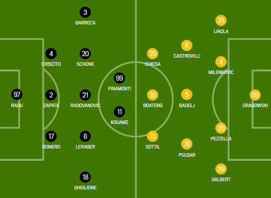 Vincenzo Montella riparte dal 4-3-3. Poche le novità rispetto alla formazione che ha affrontato il Napoli sabato scorso. In difesa i quotidiani schierano Lirola, Pezzella, Milenkovic e Ranieri davanti a Dragowski (solo Repubblica dà in vantaggio Dalbert su Ranieri). Per le altre scelte dell’Aeroplanino, giornali concordi sul centrocampo formato da Castrovilli, Badelj e Pulgar e sul trio d’attacco composto da Chiesa, Boateng (panchina, quindi, per Vlahovic) e Sottil.