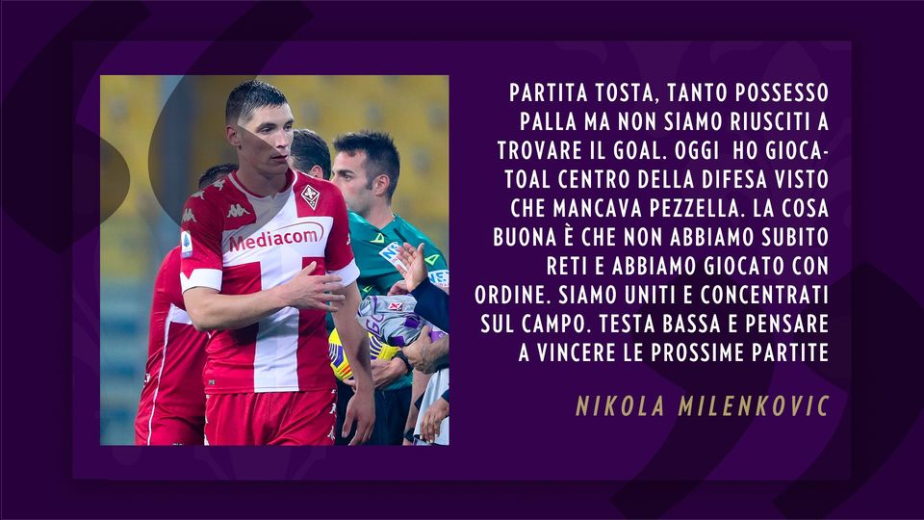 Dopo il pareggio in quel di Parma, Mister Iachini si è soffermato sulla prestazione dei viola ai microfoni di Sky Sport: “La squadra stava soffrendo la scorsa stagione, l’ho tirata fuori. Abbiamo fatto una grande rincorsa, quest’anno c’è stato qualche problemino ma non sono cose che andranno ad incidere sul mio futuro. I ragazzi sanno che l’obiettivo resta arrivare nella parte sinistra della classifica, ancora mancano tante partite. Abbiamo pagato dazio con qualche rimonta che a livello emotivo ci ha toccato psicologicamente. Poi gli errori ci hanno messo un po’ di paura, inconsciamente capita di soffrirli. Stiamo lavorando per migliorare sotto questo aspetto e oggi ho visto una buona gara da parte dei miei giocatori in difesa. Attaccanti che mancano in zona gol? Dobbiamo tornare prima ad essere la migliore difesa del campionato, poi i gol arriveranno”.