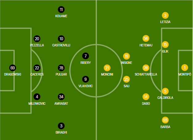Żółte kartki: Biraghi, Lirola - Glik, Letizia, Hetemaj