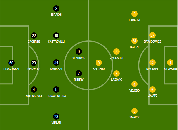 Niedysponowani: R. Vieira, Benassi, Kalinić, Favilli, Di Carmine